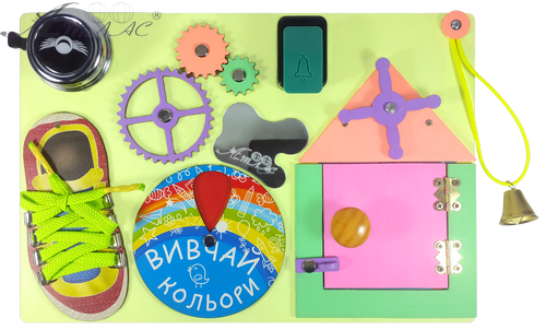 Бизиборд - детская игрушка, развивающая мелкую моторику и внимательность малыша в игровой форме. Изготовлен из окрашенной фанеры с напечатанным текстом. Фактический цвет товара может отличаться от изображенного на фото.