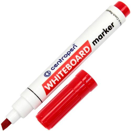 Маркер сухостираемый, Centropen, клиновидный, Красный. Ширина линии от 1 до 4,6мм. Хорошо стирается с гладких поверхностей обічной сухой губкой или тряпкой. Яркий цвет хорошо виден на белой поверхности, предназначен для сухостираеміх досок. Фактический оттенок изделия может отличаться от изображенного на фото.