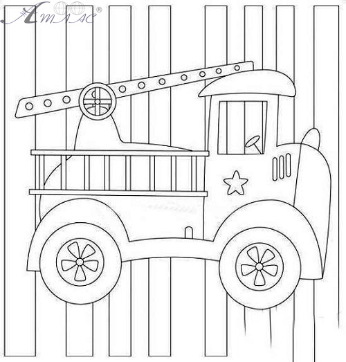 Холст с контуром Пожарная машина на подрамнике 25 х 25 см  950389