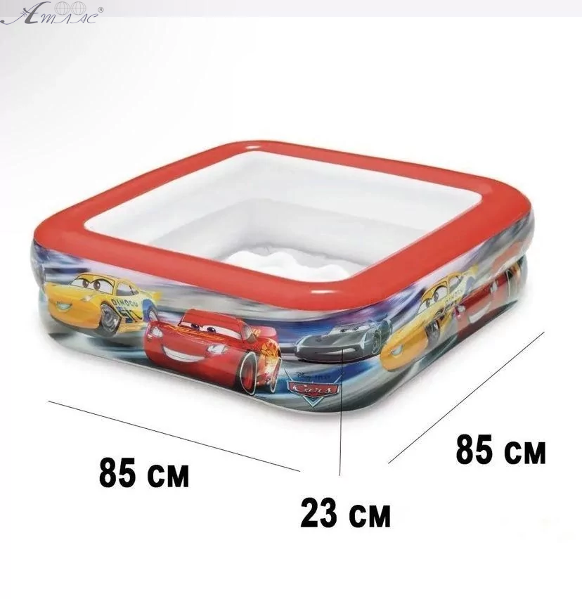 Бассейн Intex квадратный мягкое надувное дно Тачки 85-85-23см 57101