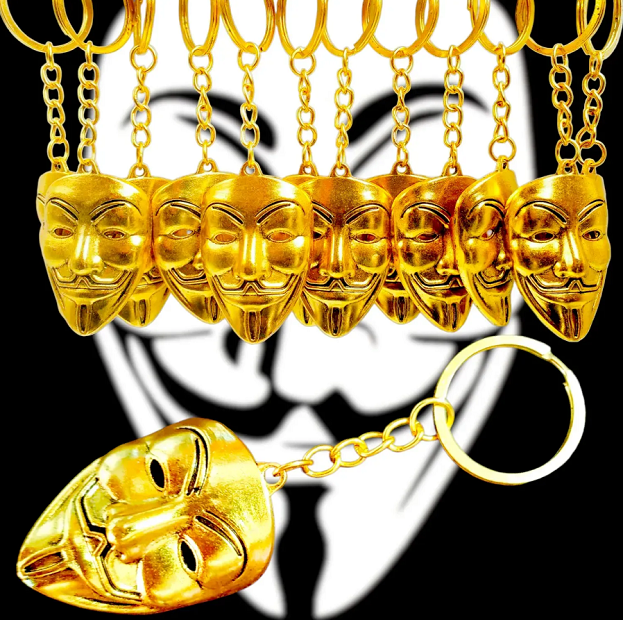 Брелок маска Гая Фокса (англ. Guy Fawkes mask), также известна как Маска Анонимуса, VENDETTA. Аксессуар со смыслом для тех, кто хочет подчеркнуть свою индивидуальность и право на справедливость. Размер : 5 х 3,5 см Фактический оттенок изделия может отличаться от представленного на фотографии из-за особенностей цветопередачи экрана.