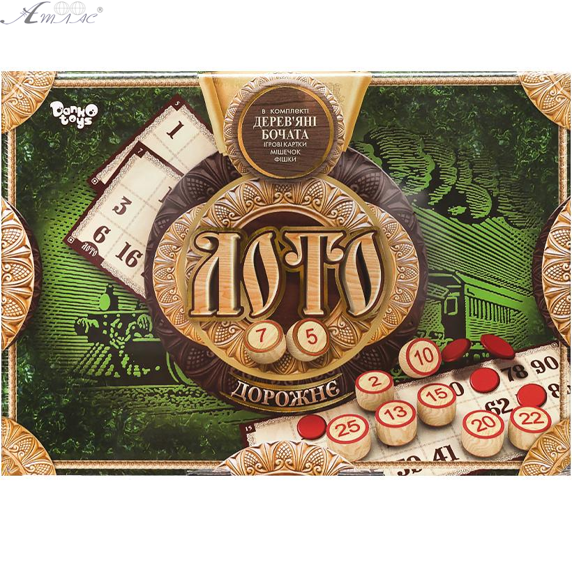 Настольная игра Дорожное лото с деревянными бочонками в коробке Danko Toys. Фактический оттенок товара может отличаться от изображенного на фото.