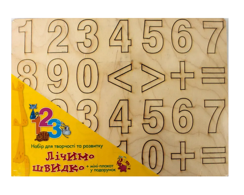 Набор для творчества и развития "Считаем быстро". Поможет ребенку быстро и в форме игры освоить счет и подготовиться к школе. 28 элементов. Размер : 24 х 15,5 х 0,7 см Фактический оттенок изделия может отличаться от представленного на фотографии из-за особенностей цветопередачи экрана.