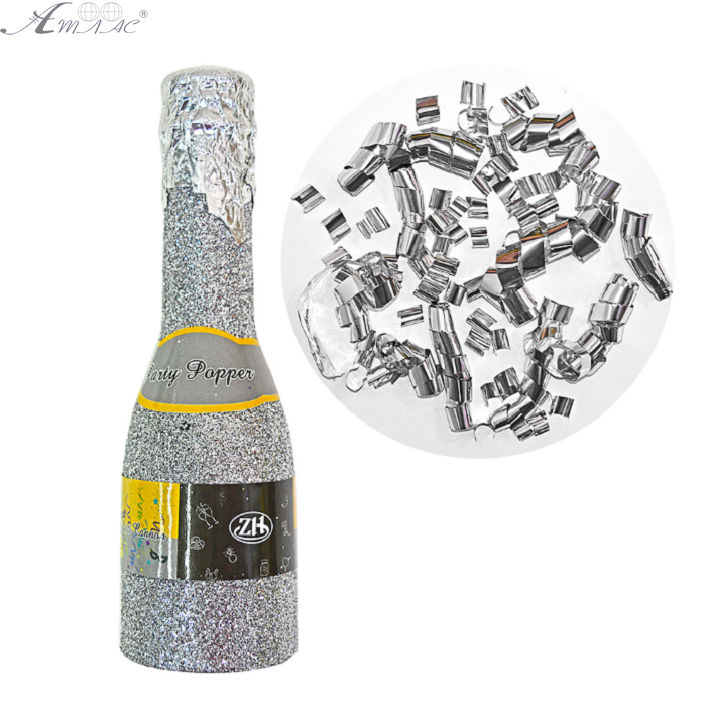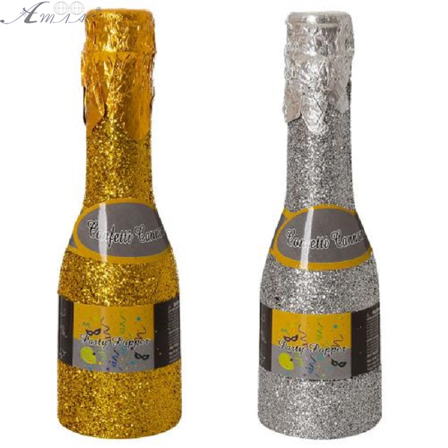 Оригинальная пневматическая хлопушка в виде бутылки шампанского, предназначена для безопасного использования как в помещениях, так и на улице. Внутри хлопушки конфетти – метафан, плавно и эффектно разлетающийся. Размер хлопшки : 16 х 4,5 см. Цвет: Золото и Серебро. Фактический оттенок товара может оличаться от изображенного на фото.