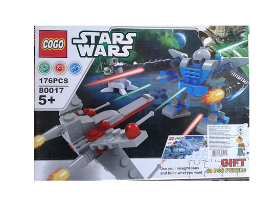 Конструктор COGO «Звездные войны», 80017 для юных фанатов космических саг и любителей моделирования. Конструкторы Stars Wars – это целая вселенная, которая погружает в удивительный мир, наполненный приключениями и интересными персонажами. Количество деталей конструктора составляет 179 элементов и пазл 48 деталей. Сборка деталей конструктора тренирует логику, усидчивость и мелкую моторику ребенка. Возраст 5+.