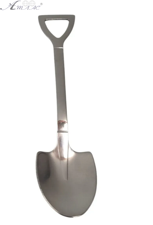Декоративная чайная Ложка в форме штыковой лопаты из нержавеющей стали. Цвет: серебро. Длина: 15,5 см. Фактический оттенок изделия может отличаться от представленного на фотографии из-за особенностей цветопередачи экрана.
