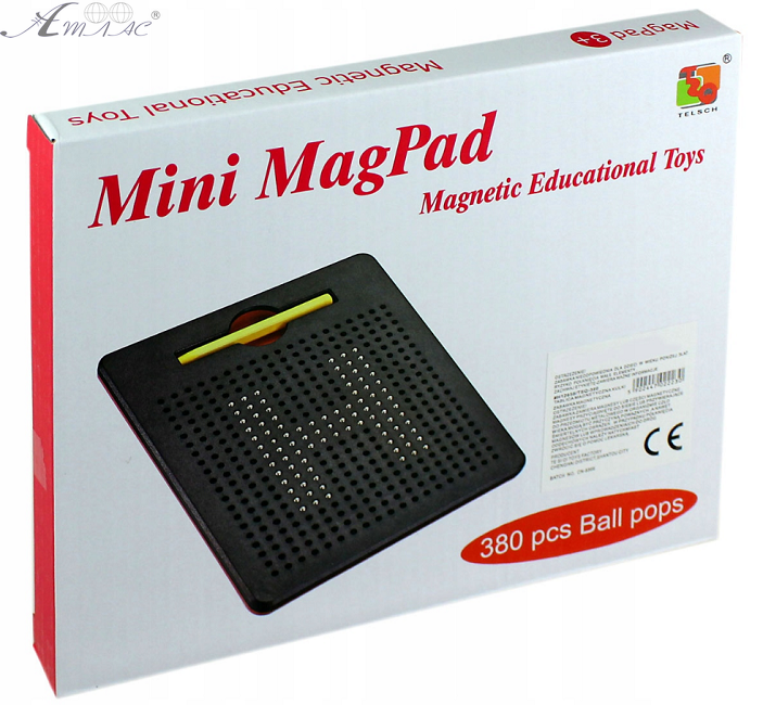 Оригинальная магнитная доска для рисования. Доска полностью покрыта маленькими отверстиями, а внутри нее есть множество металлических шариков. Проводя магнитной ручкой по доске, из этих шариков можно создать узор или даже что-то написать. Внутри есть карточки с примерами рисунков, которые можно повторить на доске. Игрушка развивает мелкую моторику рук, воображение и творческое мышление. Размер доски: 18х22 см. Фактический оттенок изделия может отличаться от представленного на фотографии из-за особенностей цветопередачи экрана.