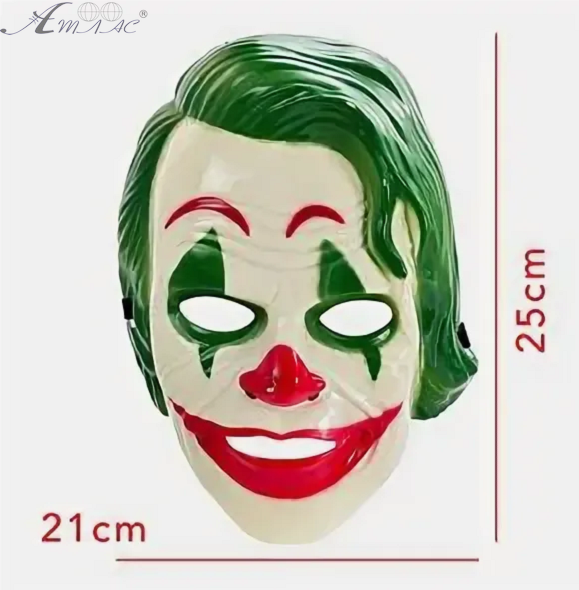 Игрушка Маска Джокер с зелеными волосами (25х21 см), 7156 Станьте королем вечеринки и воплотите образ самого харизматичного злодея Готэма! Маска Джокера с зелеными волосами идеально подходит для косплея, тематических фотосессий и праздников. Размер маски 25 х 21 см. Крепится на голову при помощи резинки. Фактический оттенок изделия может отличаться от представленного на фотографии из-за особенностей цветопередачи экрана.