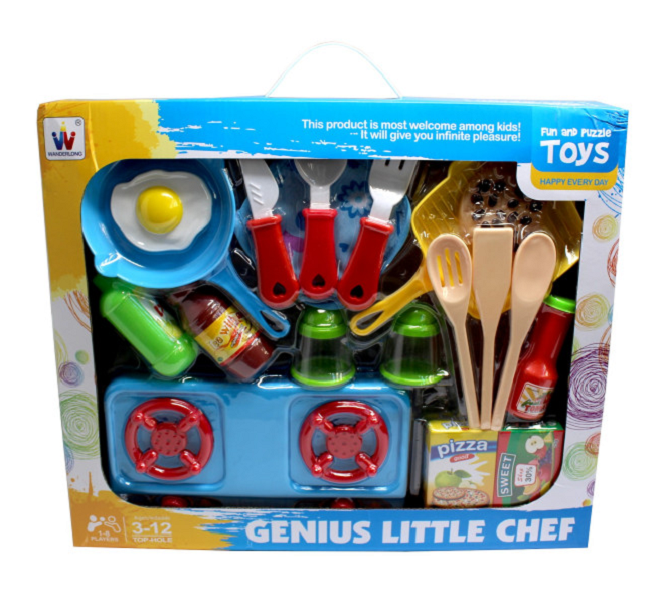 Набор для юного кулинара W 019-6 содержит в себе множество интересных предметов кухонного обихода: плиту, сковородки, перечницу, солонку, бутылочки с соусом, пластиковые сладости и продукты, стаканы, кухонные принадлежности и столовые приборы. Размер упаковки: 42 х 35,5 х 6 см. Фактический оттенок изделия может отличаться от представленного на фотографии из-за особенностей цветопередачи экрана.