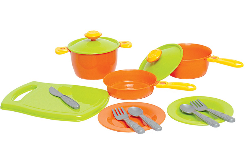 Игрушка "Кухонный набор 1" ТехноК (арт.3251) Набор состоит (14 элементов): сотейника с крышкой, сковородки, кастрюли с крышкой, дощечка для нарезки, тарелка – 2 шт., ложечка – 2 шт., вилка – 2 шт., нож – 2 шт. Упаковка пакет. Размер упаковки: 37 х 16 х 11 см. Фактический оттенок изделия может отличаться от представленного на фотографии из-за особенностей цветопередачи экрана.