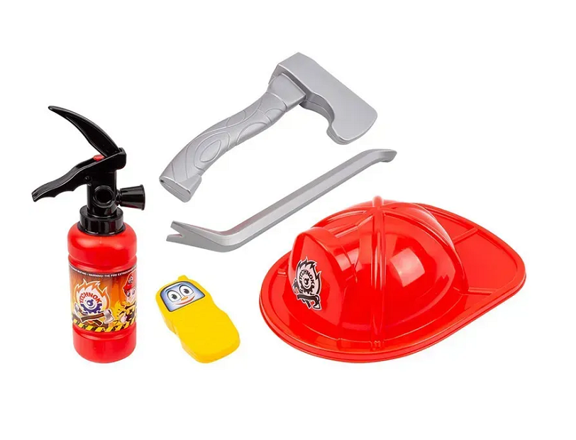 В наборе пластиковые - Каска пожарного со смягченной вставкой, Топор пригодятся при разборке завалов, Ломик, Огнетушитель и Телефон-рация. Размер каски: 30 х 22 х 10 см, топор: 27 см. Фактический оттенок изделия может отличаться от представленного на фотографии из-за особенностей цветопередачи экрана.
