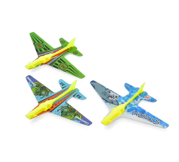 Самолет заправляют в обойму и запускают, необходимо только оттянуть затвор и нажать на спусковой крючок. В комплекте пистолет и два самолетика. Размеры: Пистолет - 21 х 9,5 х 3 см, Самолет - 9,5 х 14,5 х 1,5 Фактический оттенок изделия может отличаться от представленного на фотографии из-за особенностей цветопередачи экрана.