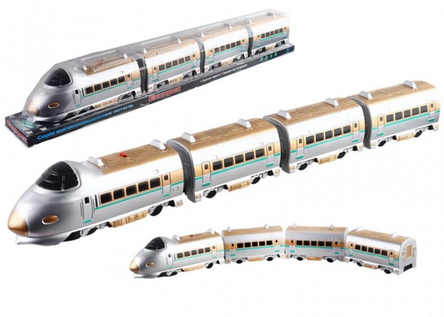Поезд состоит из четырех вагонов, имеет функцию разворота при столкновении и воспроизводит звуковые эффекты электрички. Стильные серебристо-золотые вагоны. Размер упаковки: 74,5 х 9 х 11см. Фактический оттенок изделия может отличаться от представленного на фотографии из-за особенностей цветопередачи экрана.