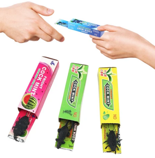 Всем знакомый прикол – жвачка с сюрпризом в виде жука. Жук выскакивает из коробочки с помощью пружинки, когда Вы тянете жвачку. Материал: пластик, бумага. Фактический оттенок изделия может отличаться от представленного на фотографии из-за особенностей цветопередачи экрана.