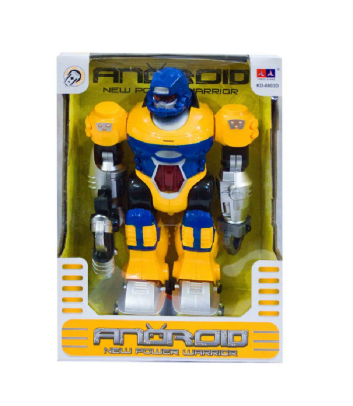 Робот "ANDROID". Ходит вперед, двигает руками вверх и вниз, головой влево и вправо. Светится, имеет звуковые эффекты. Размер робота: 15 x 7 x 23 см. Фактический оттенок изделия может отличаться от представленного на фотографии из-за особенностей цветопередачи экрана.