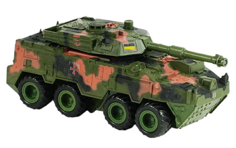 Игрушка Танк колесный инерционный свет звук 25см в коробке 24186