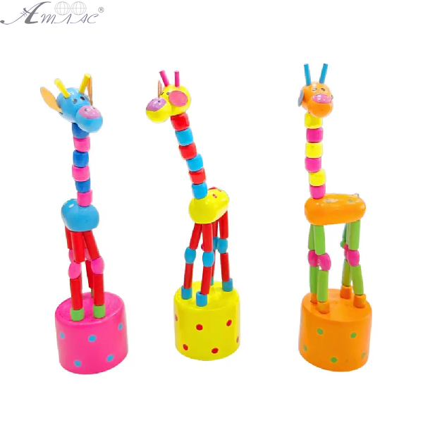 Классическая ретро-игрушка «Танцующий жираф» из дерева. При нажатии на кнопку снизу, игрушка начинает двигаться в разные стороны, имитируя танцевальные движения и менять позы. Размер 17 см. Фактический оттенок изделия может отличаться от представленного на фотографии из-за особенностей цветопередачи экрана.