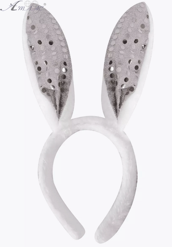 Игрушки Обруч Ушки Зайки меховые с пайетками 26см серебро 04899
