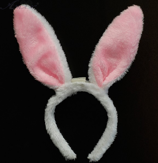 Игрушки Обруч Ушки Зайки с подсветкой 29 см меховые белые с розовым 09921