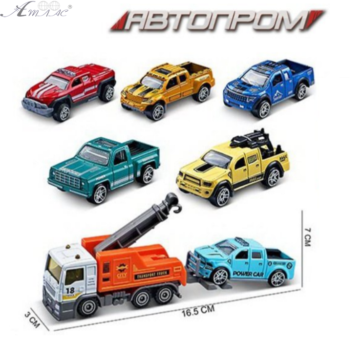 Машинка Автопром Эвакуатор с прицепом 20см микс 7465