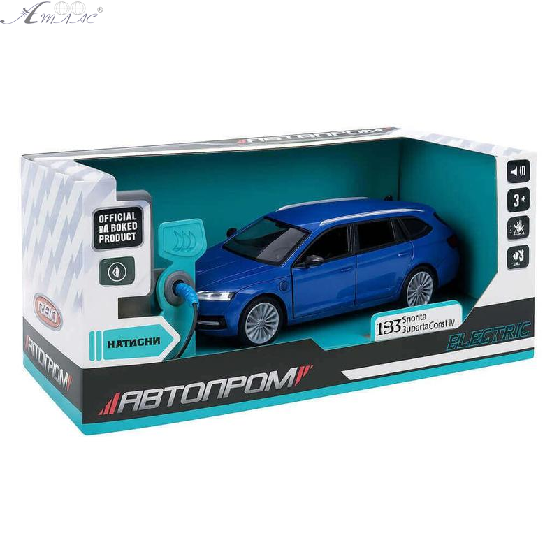 Машинка Автопром Skoda SuperB iV Синяя электро свет звук 14см 68744