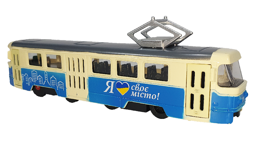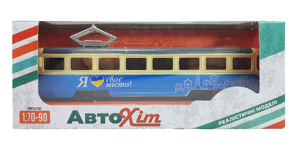 Модель АвтоХіт Трамвай 18см металл Голубой с желтым 10710