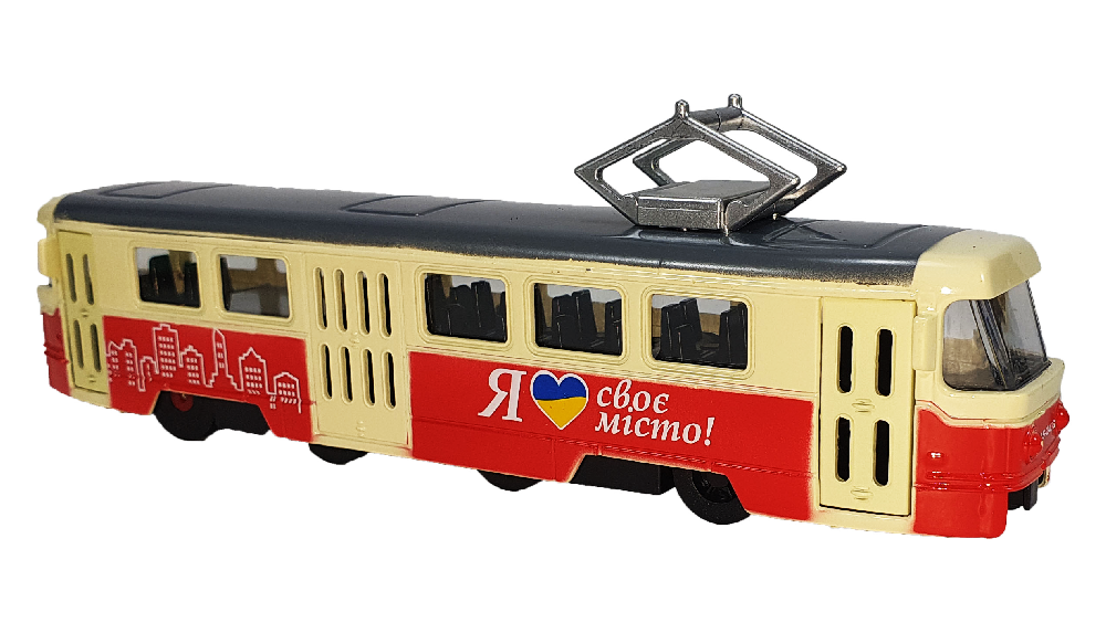 Модель АвтоХіт Трамвай 18см металл желто - красный 13945