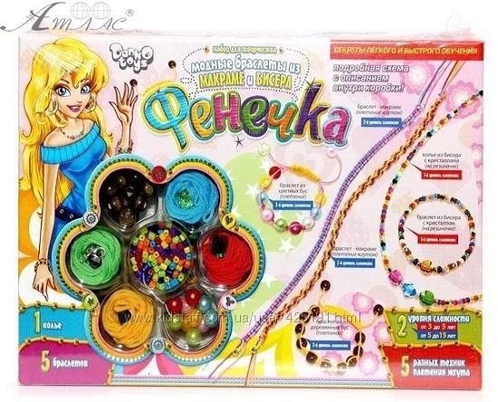 Набор для создания украшений "Фенечка" от компании "Данко Тойс" - это прекрасный инструмент для творчества и проявления фантазии. Комплект набора состоит из бусинок, бисера, лески, шнурков и подробной схемы описания техник плетения. Фактический оттенок изделия может отличаться от изображенного на фото.