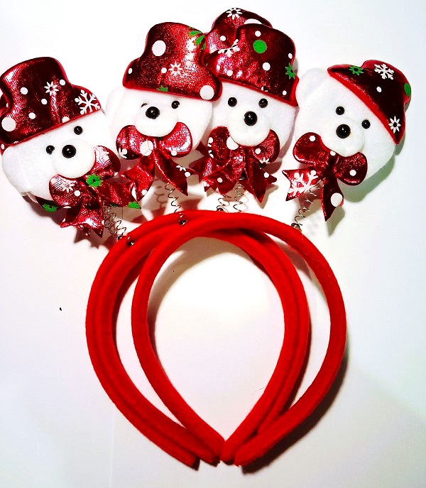 Обруч Мишка новогодний. Цвет - Красный. Аксессуары для карнавальных костюмов. Размер примерно: 23 х 11 см. Фактический оттенок изделия может отличаться от представленного на фотографии из-за особенностей цветопередачи экрана.