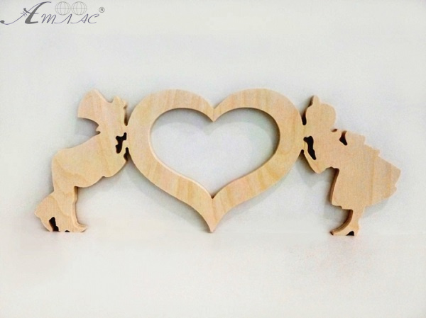 Деревянная фигурка Влюбленные с сердцем 37*15см  0065