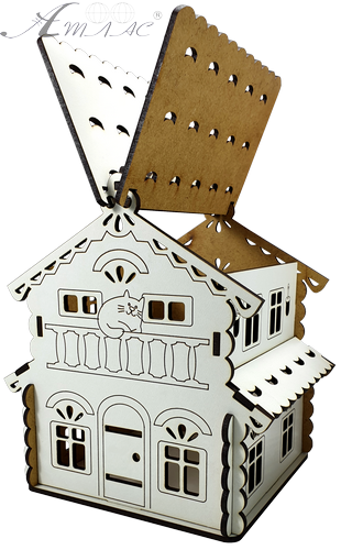 Дом № 9 шкатулка с открывающейся крышей, из МДФ 15 х 13 х 17 см AS-6245, М-2082