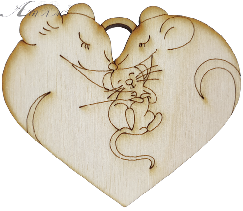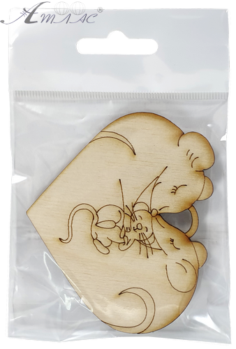Фигурка фанерная - Мышонок № 18 семья в сердце 80 х 67 мм с магнитом AS-4842, В-0400