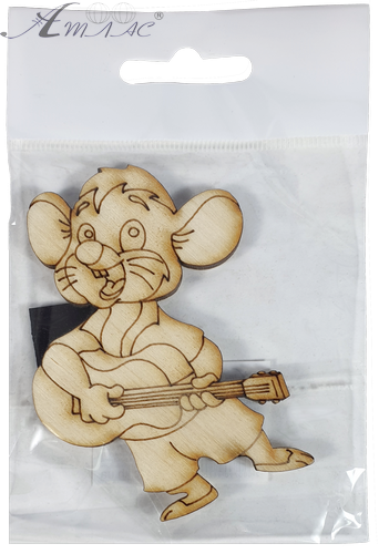 Фигурка фанерная - Мышонок № 23 с гитарой 58 х 80 мм с магнитом AS-4847, В-0405