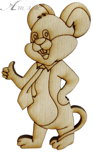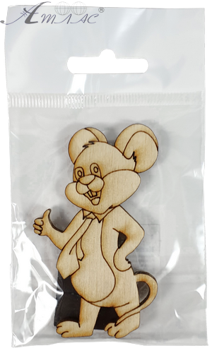 Фигурка фанерная - Мышонок № 7 в галстуке 46 х 77 мм с магнитом AS-4831, В-0389