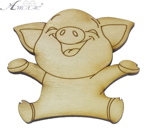 Фигурка фанерная - Свинка № 1 радостная 68 х 60 мм с магнитом AS-4802, В-0351