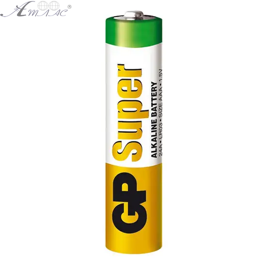 Батарейка щелочная, пальчиковая GP Super размером AAA LR03. Цена указана за 1 батарейку. Цилиндрической формы, напряжение 1,5 V. Срок годности 03,2032год. Фактический оттенок товара может отличаться от изображенного на фото.