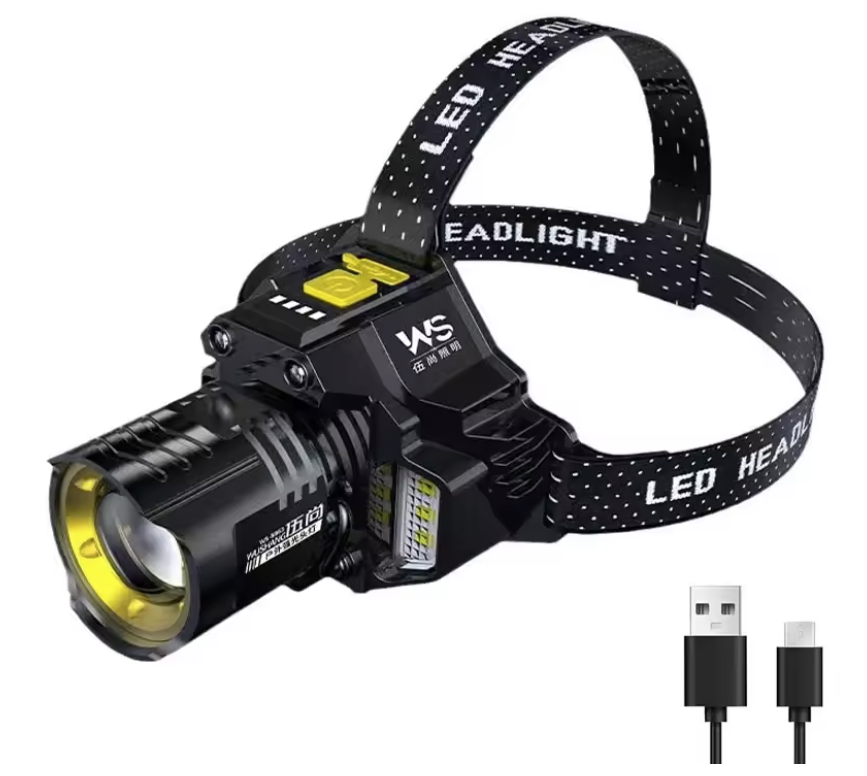 Фонарик аккумуляторный налобный Zoom сенсор пластик 8663
