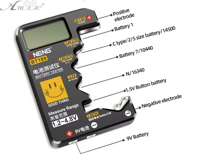 Тестер батареек универсальный с экраном 9 х 6 х 1,3см. Фактический оттенок товара может отличаться от изображенного на фото.