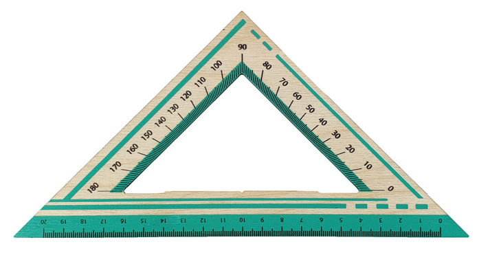 Деревянный треугольник со шкалой длиной 20 см, с углами 90-45-45. Он украшен цветным принтом - Транспортир бирюза. Размеры изделия 23 х 11,7 х 0,4 см. Фактический оттенок изделия может отличаться от изображенного на фото.
