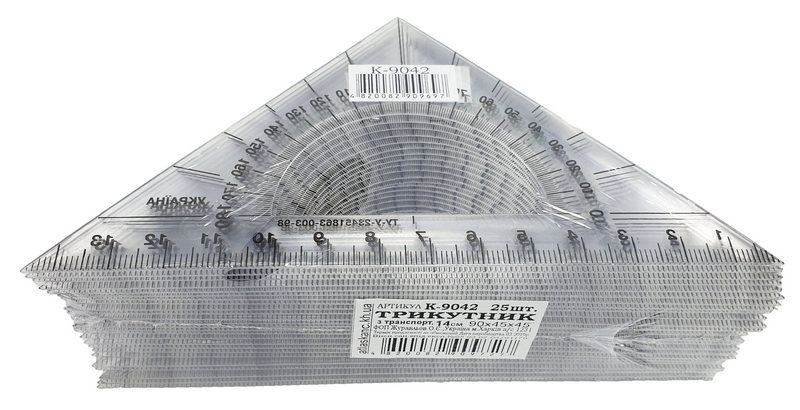 Треугольник прозрачный с транспортиром 140 х 70 мм AS-0262, К-9042