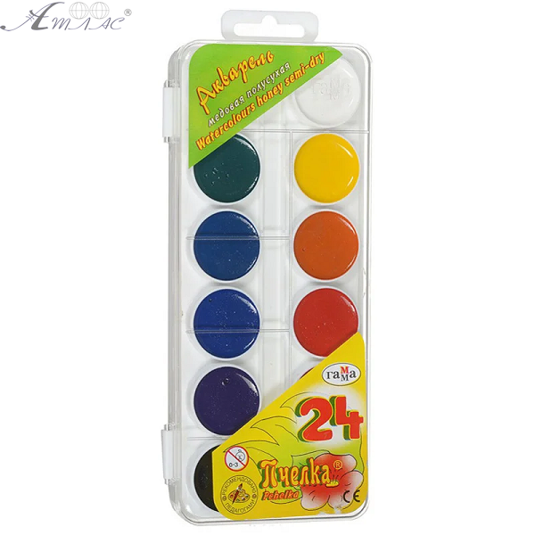 Акварель набор Гамма Пчелка медовая полусухая 24 цвета 212035