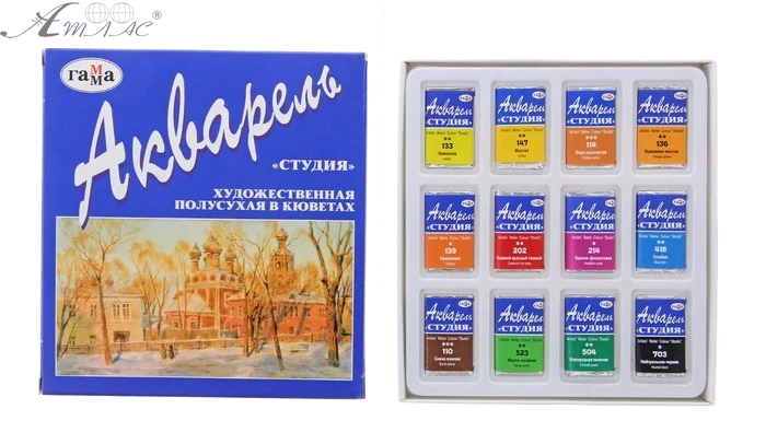 Акварель набор Гамма Студия художественные полусухие в кювет 12 цветов 215002