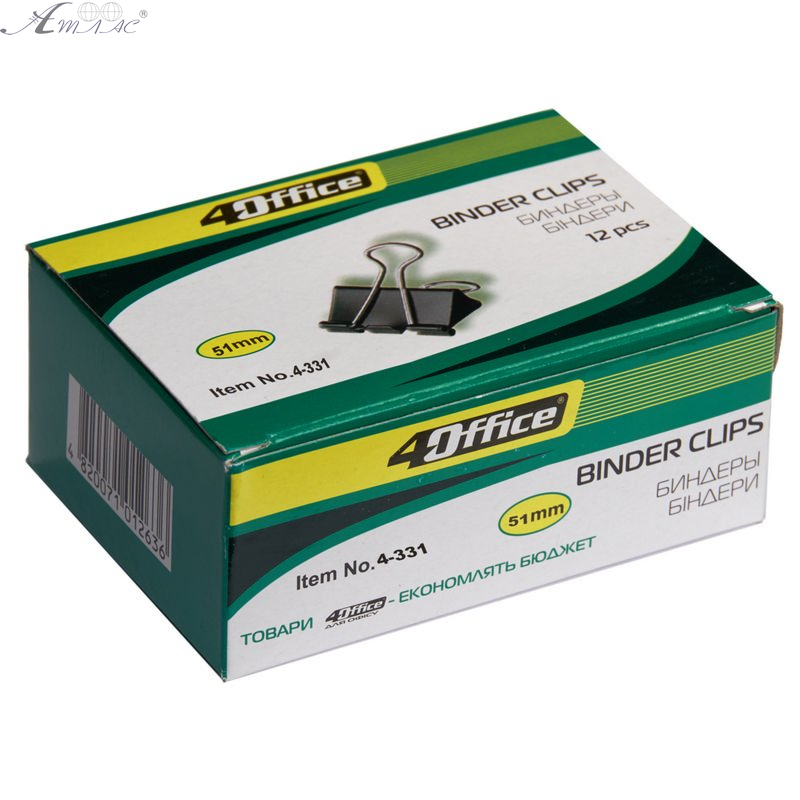 Биндер канцелярский 4OFFICE 51мм шириной. Продается упаковкой в которой 12 шт биндеров. Фактический оттенок изделия может отличаться от изображенного на фото.