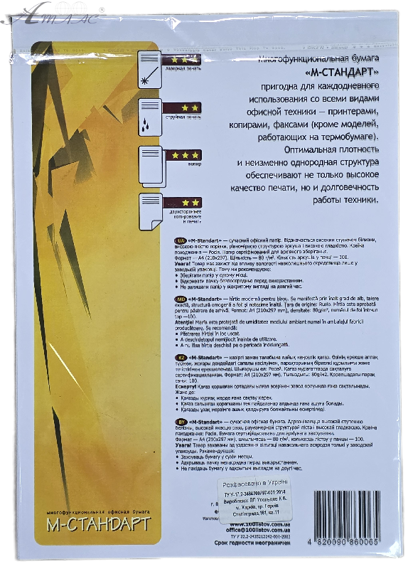 Бумага А 4 100 л М-Стандарт 80 г/м 03083