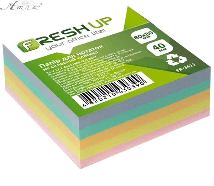 Бумага для заметок Fresh Up Цветная НЕ склеенная 80 х 80 мм 400 л FR-3411