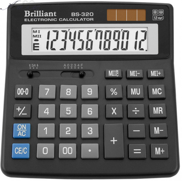 Калькулятор Brilliant BS-320 настольный 12 разрядный, две памяти, два питания, клавиша двойного нуля, размер калькулятора 156х157х34 мм. Клавиша MU - торговая наценка. Фактический оттенок товара может отличаться от изображенного на фото.
