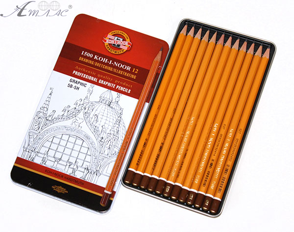 Карандаши графитовые набор Koh-i-Noor 12 шт в металлической коробке 5B - 5H  1502 III