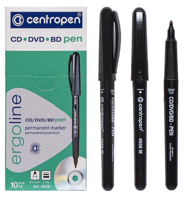 Маркер для CD, centropen, чорный, 1мм 4606