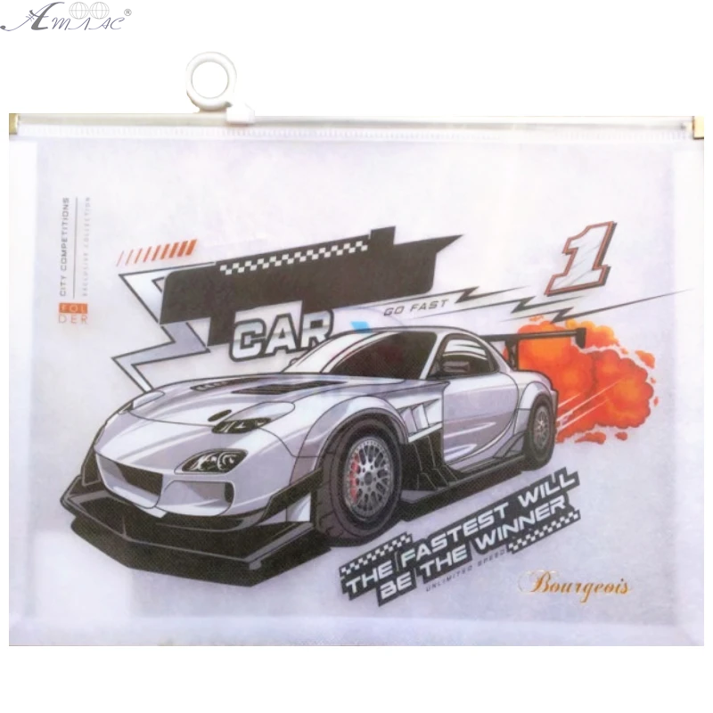 Папка на молнии, бегунок А4+ Bourgeois машина, пластик 180мкн. Фактический оттенок товара может отличаться от изображенного на фото.