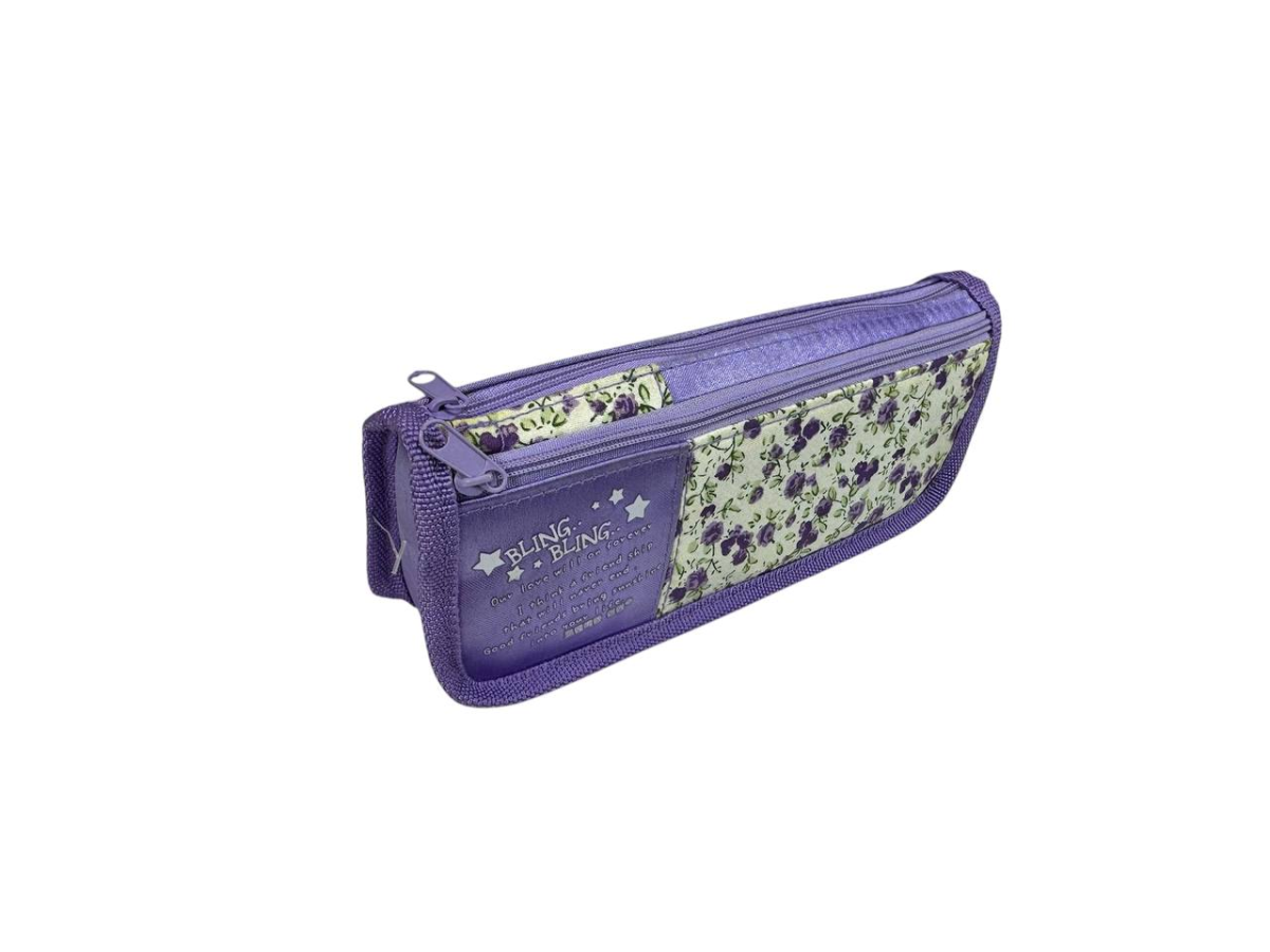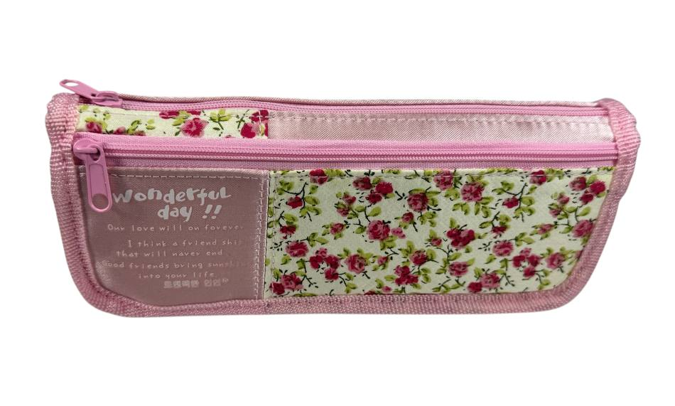 Пенал школьный косметичка 2 отделения в цветочках J-8261
